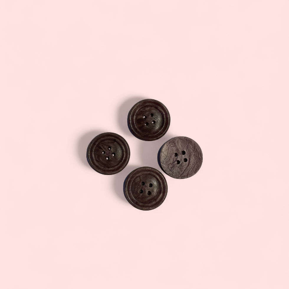 Buttons: Round 4 holes, brown/beige mix, plastic